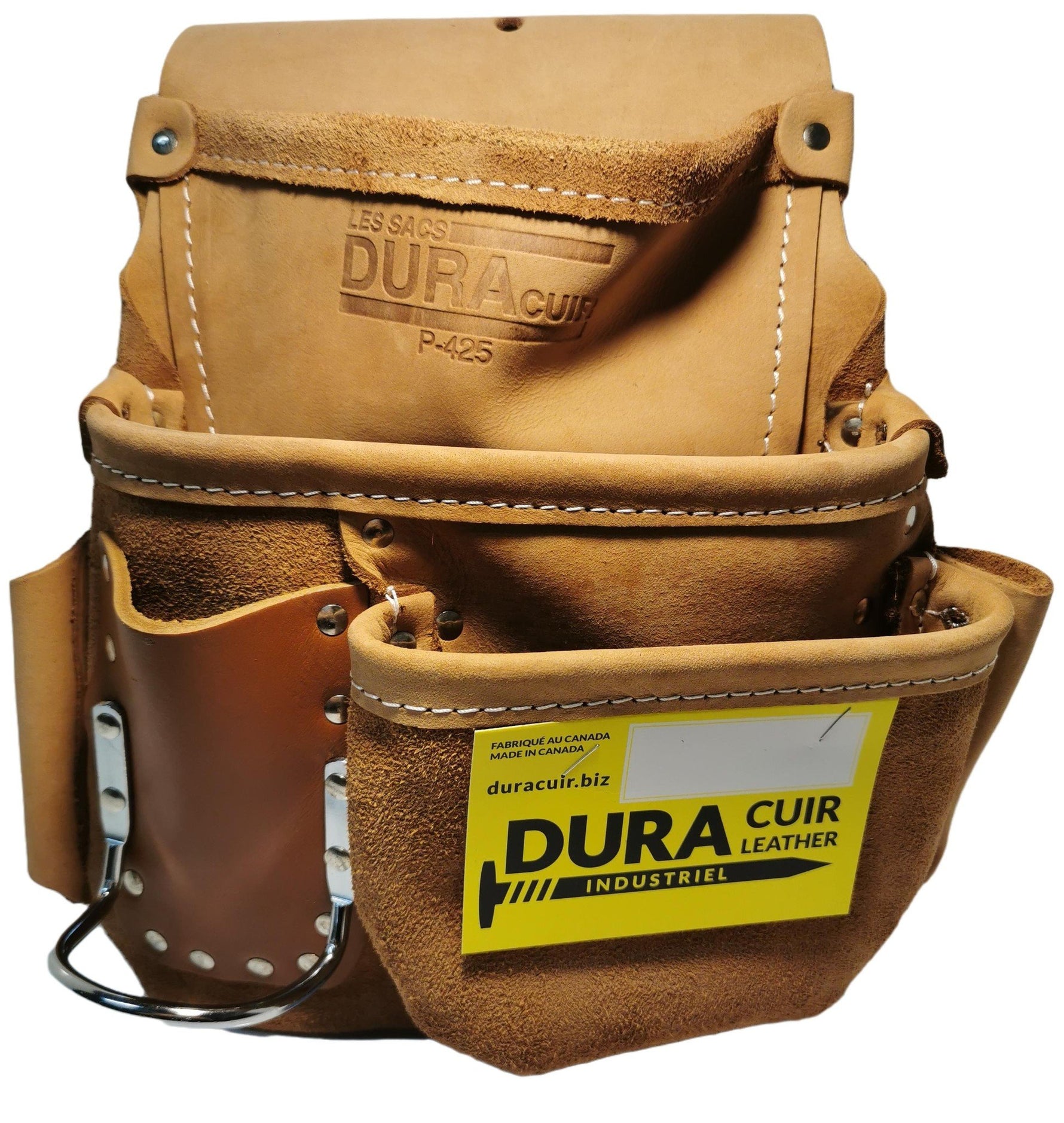 Sac à clous en cuir 3 poches droitier P425. Accessoires ouvriers- DCA produits québécois. Fabriqué au Québec: